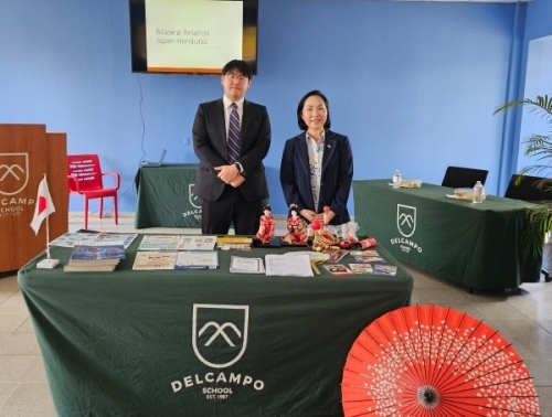 Durante la actividad, se ofreció una presentación sobre la relación de amistad y la historia de la cooperación para el desarrollo que Japón y Honduras han construido, así como una explicación general sobre la ceremonia del té, una de las tradiciones culturales del Japón, y sobre el programa de becas del Gobierno del Japón para estudios de pregrado y posgrado.