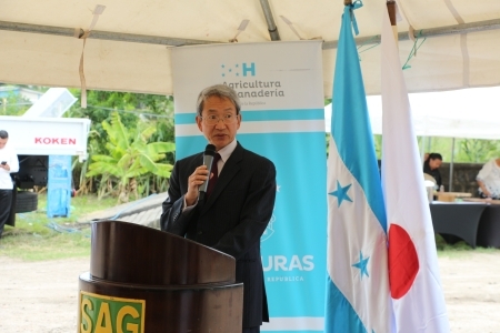 Durante la ceremonia el Embajador Nakai destacó “Para desarrollar aún más la agricultura de Honduras, es imprescindible aumentar y garantizar el abastecimiento de agua. Japón al igual que Honduras, tiene muchas zonas montañosas y el agua subterránea son fuentes importantes, por lo que tenemos mucha experiencia en la perforación de pozos. El equipo que estamos entregando el día de hoy es fabricado en Japón y espero que sea utilizado cuidadosamente durante muchos años para un suministro constate del agua. Deseo que este equipo que estamos donando en el 90 aniversario de las relaciones diplomáticas entre ambas naciones contribuya al desarrollo de Honduras”.