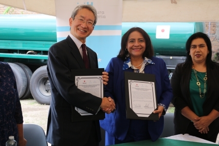 El 27 de agosto, el Embajador Kazuhiro NAKAI, realizó la primera entrega de equipo para fortalecer la producción agrícola que es donado a través del “Programa de Desarrollo Económico y Social”. En esta entrega se equipó a la Secretaría Agricultura y Ganadería con una perforadora de pozos, un compresor y un camión cisterna. La ceremonia contó con la participación de la Secretaria de Agricultura y Ganadería, Laura Suazo y el Subsecretario de Agricultura y Ganadería, Roy Lazo, entre otras autoridades.